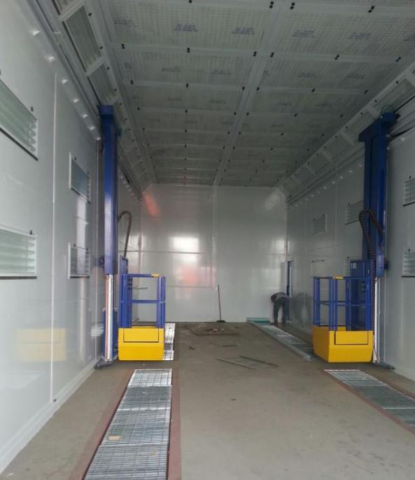 • Cabine de pulverização de pintura para autocarros com solução de elevador de carro 3D na Indonésia