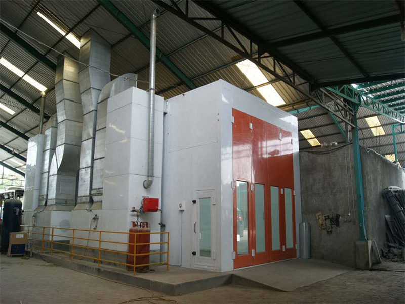Cabine de pulverização de pintura para autocarros com solução de elevador de carro 3D na Indonésia